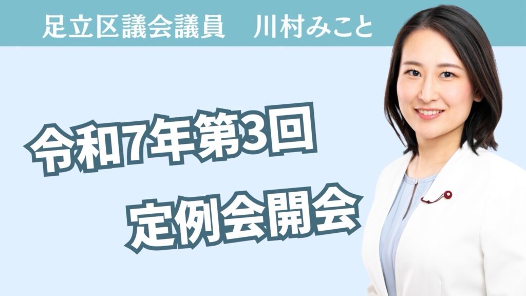 皆さまこんばんは。 足立区議会議員の川村みことです。 本日、令和7年第2回定例会が開会しました。 1日目である本日は自民党、公明党による代表質問、2日目の明日は共産党、是々非々の会、都民ファースト・無所属の会、議会改革を全力で推し進める... -